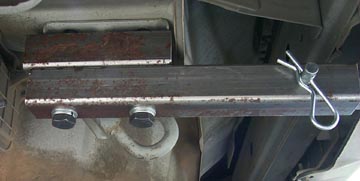 Here are a couple of pictures showing the pieces bolted together and to the car. The only thing left to do is take it back off and paint it to keep it from rusting.